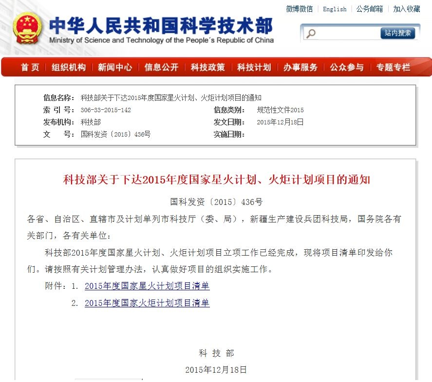12月18日,根據(jù)國家科技部“關(guān)于下達(dá)2015年度國家星火計劃、火炬計劃項目的通知”。本公司《22萬噸廢棄物資源化再利用產(chǎn)業(yè)化示范》項目,獲得國家科技部火炬計劃項目(產(chǎn)業(yè)化示范項目)立項,項目編號為2015GH061389。