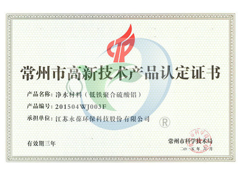 公司堅持科技創(chuàng)新,不斷拓展危廢資源綜合利用工藝,技術(shù)部新研發(fā)的資源綜合利用產(chǎn)品低鐵聚合硫酸鋁榮獲常州市高新技術(shù)產(chǎn)品。