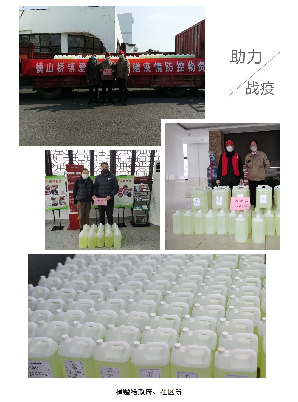 疫情發(fā)生后,公司在第一時間成立了防控疫情指揮小組,出臺內(nèi)部疫情防控實施方案,全力投入到疫情防控工作中。在做好公共事業(yè)物資保障供給的同時,多方組織籌集防疫物資消毒液約8噸左右,全部免費提供給周邊急需防疫物資的政府、機關(guān)、企業(yè)事業(yè)單位和當?shù)鼐用瘛H用短短2天半時間全部免費發(fā)放完畢,為抗擊疫情做出企業(yè)應有的貢獻。
