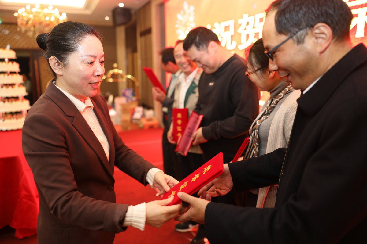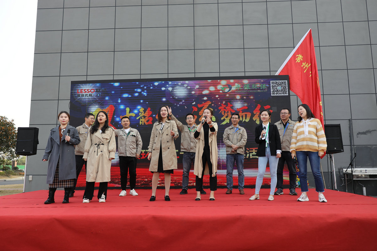 活動(dòng)現(xiàn)場(chǎng)彩旗飄揚(yáng),7幅“貢獻(xiàn)獎(jiǎng)”獲得者個(gè)人事跡展架及公司老照片展吸引著新老員工的眼球,員工們從一張張照片中了解了公司的創(chuàng)業(yè)之路和文化信念;顒(dòng)開(kāi)始前,總部專(zhuān)門(mén)安排講解人員帶領(lǐng)老廠區(qū)員工參觀公司展廳及生產(chǎn)車(chē)間,詳細(xì)向他們介紹了新項(xiàng)目的生產(chǎn)狀況與處置種類(lèi);顒(dòng)伊始,員工通過(guò)公司形象宣傳短片了解了公司的發(fā)展歷程、發(fā)展成果和前景展望等。宣傳片結(jié)束時(shí),現(xiàn)場(chǎng)的員工代表全體起立,高呼“祝永葆環(huán)保二十周年生日快樂(lè)”,獻(xiàn)上了全體員工的美好祝福和期盼。隨后,由市總工會(huì)輕騎兵活動(dòng)專(zhuān)門(mén)精心準(zhǔn)備了一場(chǎng)充滿(mǎn)青春與活力的的文藝匯演:大氣磅礴的紅歌《把一切獻(xiàn)給黨》、歡樂(lè)時(shí)刻的《滑稽小丑》、熱情洋溢的舞蹈《燈火里的中國(guó)》……豐富多彩的節(jié)目博得現(xiàn)場(chǎng)陣陣掌聲,由公司員工合唱歌曲《幸福聯(lián)塑為你而來(lái)》將慶典現(xiàn)場(chǎng)氣氛推向高潮。晚宴現(xiàn)場(chǎng),公司總經(jīng)理王桂玉女士致感謝辭,王總回顧了公司20年來(lái)的發(fā)展歷程,并代表公司對(duì)全體員工表示誠(chéng)摯的謝意,承諾未來(lái)將提供更多、更大的平臺(tái)與員工共發(fā)展。為表彰和激勵(lì)在公司創(chuàng)業(yè)、發(fā)展歷程中做出突出貢獻(xiàn)的7位員工,隆重頒發(fā)了“貢獻(xiàn)獎(jiǎng)”證書(shū)和獎(jiǎng)品,感謝他們對(duì)公司發(fā)展付出的汗水和努力。在一首集體合唱的“生日快樂(lè)歌”中,領(lǐng)導(dǎo)與員工分享了生日蛋糕,正式拉開(kāi)了慶祝晚宴的序幕。